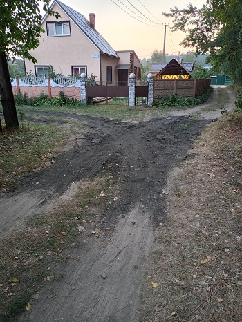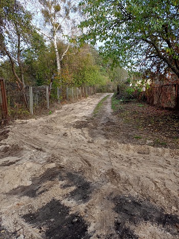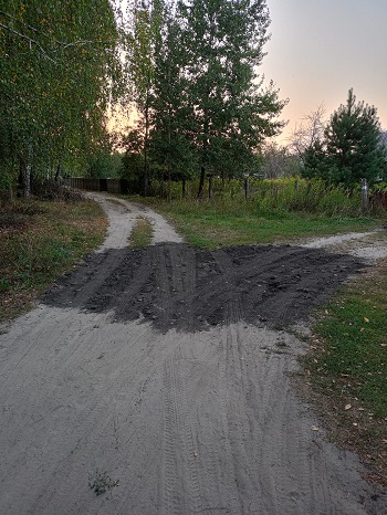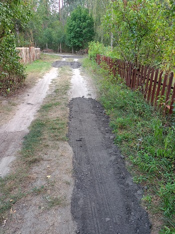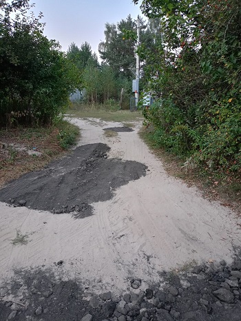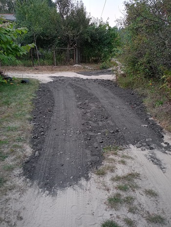 Засыпка ям и частичная засыпка колеи дорог общего пользования СТ "Дружба-80", асфальтовой крошкой.