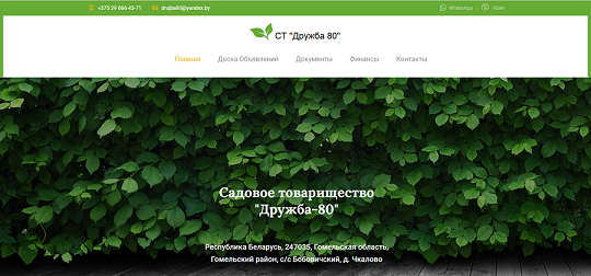 Окончены работы по разработке официального сайта С.Т. "Дружба-80". Выполнены все технические работы по подклучению сайта к сети интернет и привязке его к домену drujba80.by. C 14.10.2024г. сайт начал свою полноценную работу.