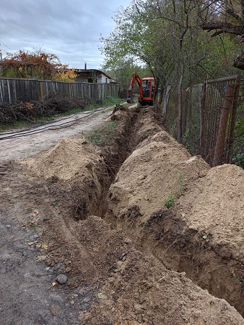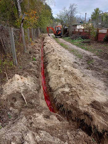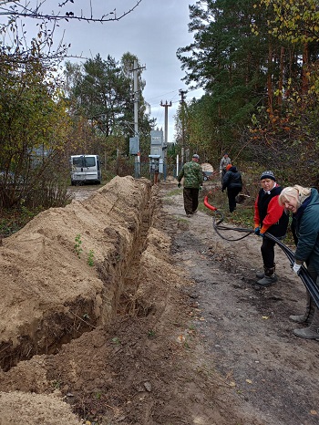 Начаты подготовительные, земельные работы, для рытья траншеи и укладки нового кабеля. Работы выполнены силами членов С.Т. и необходимы для передачи в хозяйственное ведение энергосберегающей организации линий электропередачи и трансформаторных подстанций.